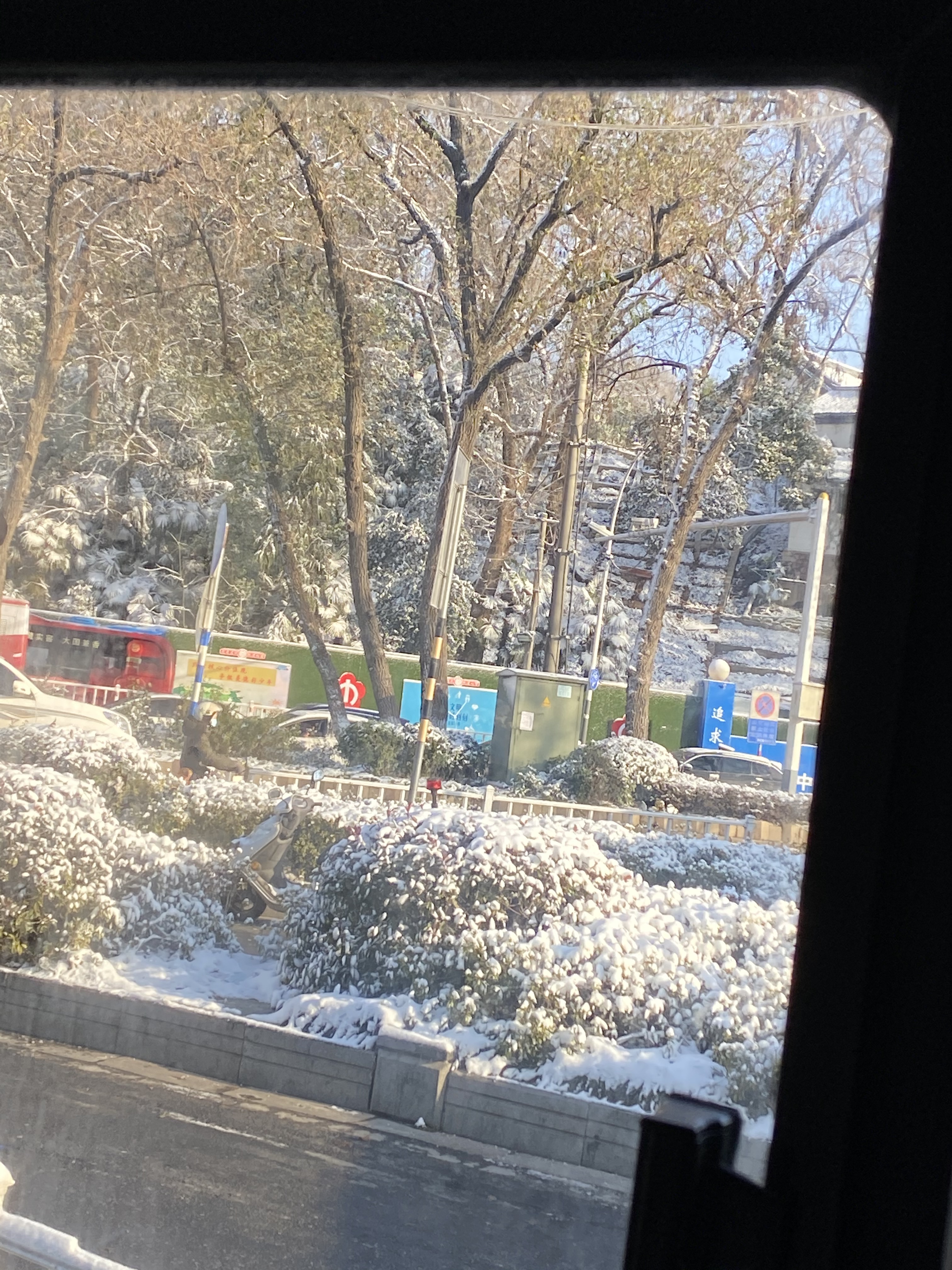 - 上班路上拍到的雪,很美但是没拍好,旁边的老奶奶熟练地掏出华为手机抓拍,瞄了一眼后悔没加微信要照片