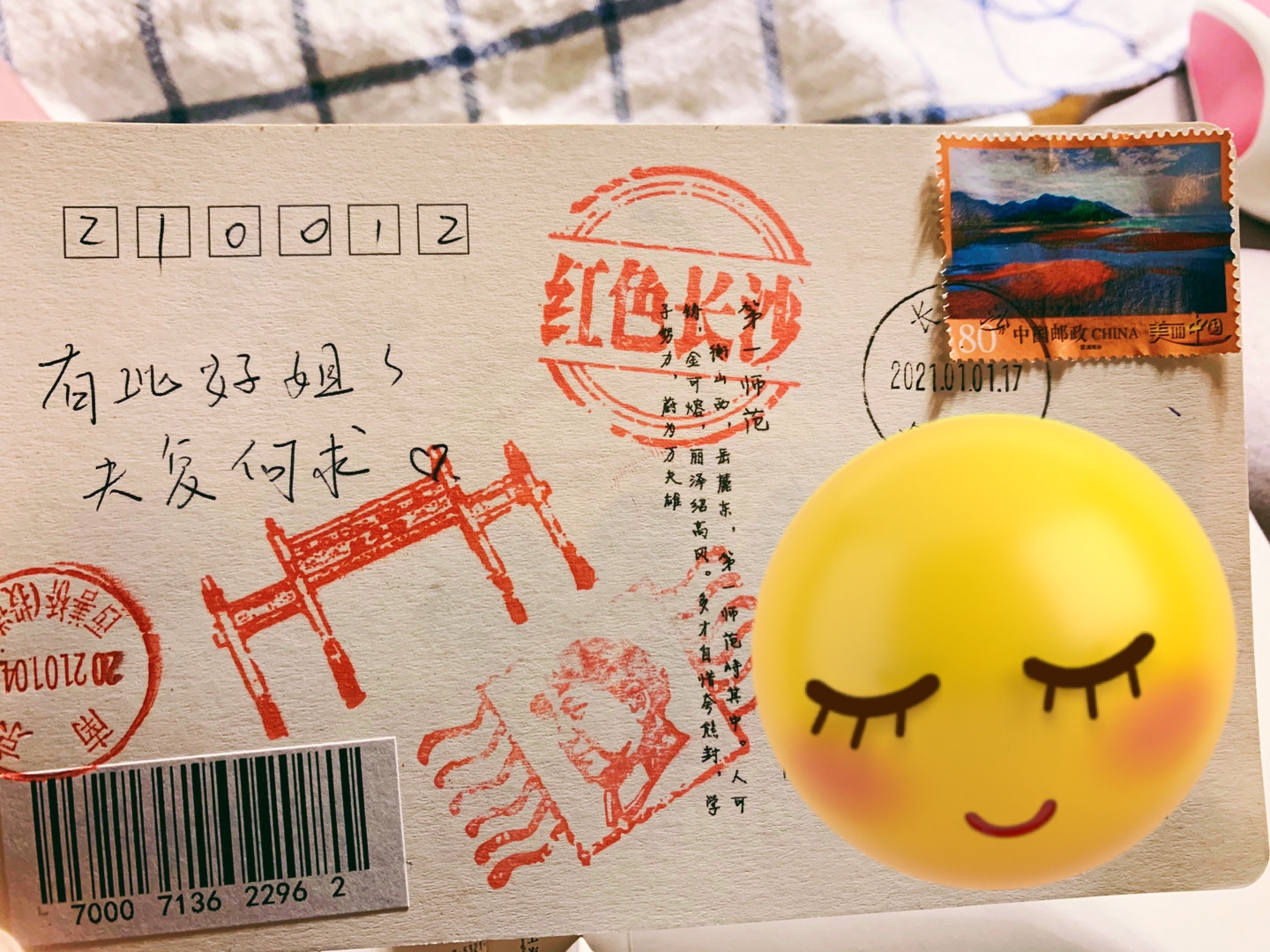 - 十七送了一张明信片,我寄给了娜娜子童鞋,很快就收到了!她在快递柜摸半天才发现是一张明信片哈哈哈( ̄▽ ̄)~*