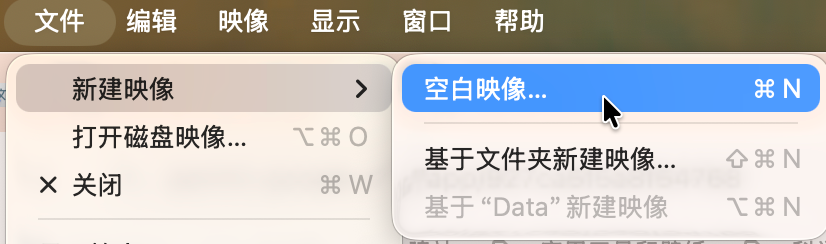 打开“磁盘工具"app,点击顶部文件,新建一个空白映像: