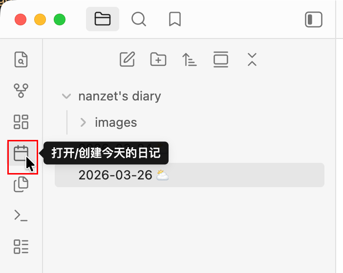 obsidian 左侧默认就有一个“打开/创建今天的日记”非常好用!
